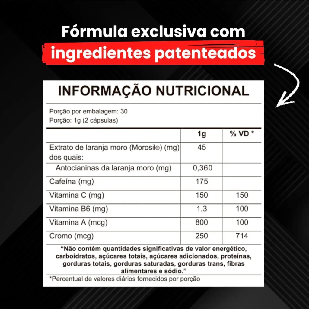 Diferente de muitos termogênicos comuns, ele conta com Morosil® original (extrato de laranja moro), um ativo clínico que ajuda o corpo a usar a gordura armazenada como energia.